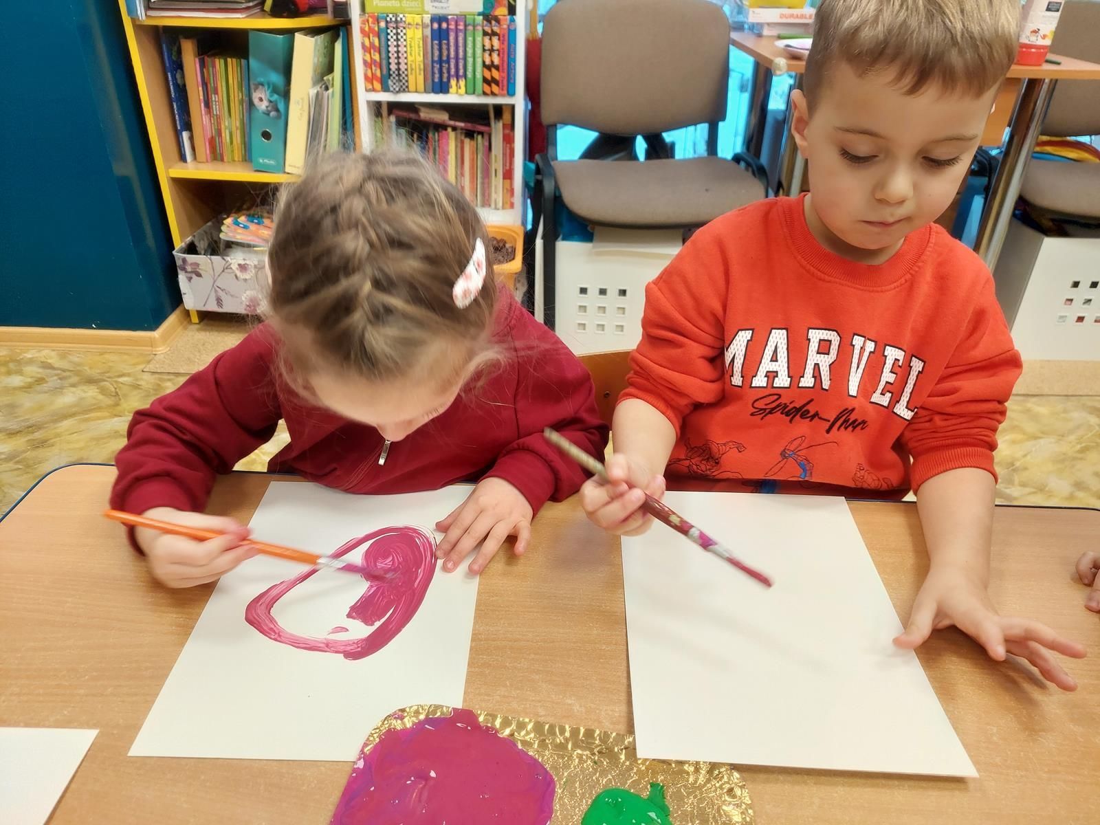 Średniaczki kontynuują swoją emocjonalną podróż w ramach projektu „Czuciaki w Krainie Emocji”. Tym razem czterolatki odwiedziły Wyspę Zdziwienia, gdzie poznały kolejnego mieszkańca – Pana Łał. Podczas zajęć dzieci odkrywały, czym jest zdziwienie i w jakich sytuacjach może się pojawić. Rozmawiały o tym, że zdziwienie może być zarówno przyjemne, jak i nieco zaskakujące, ale zawsze pomaga nam poznawać świat i uczyć się czegoś nowego.