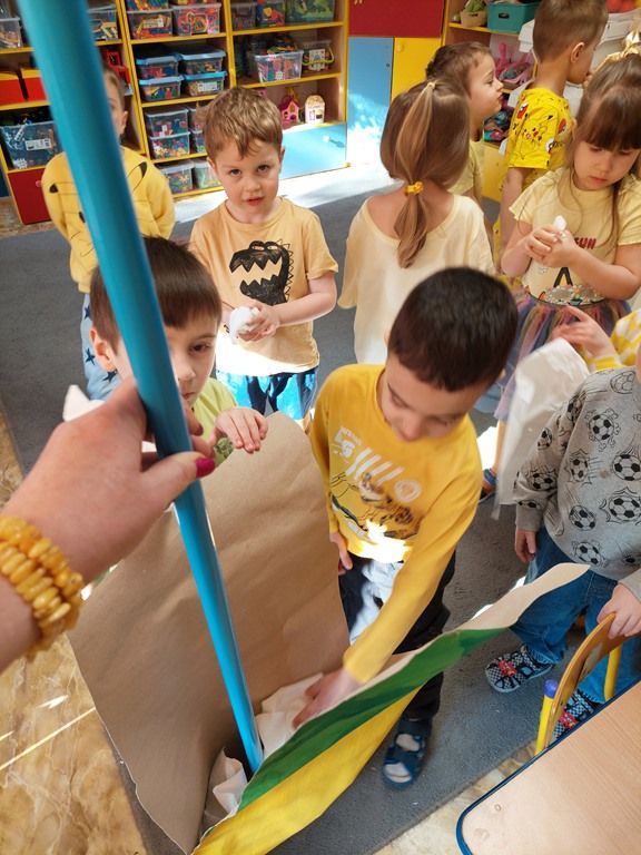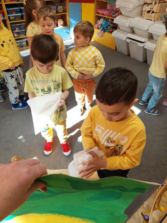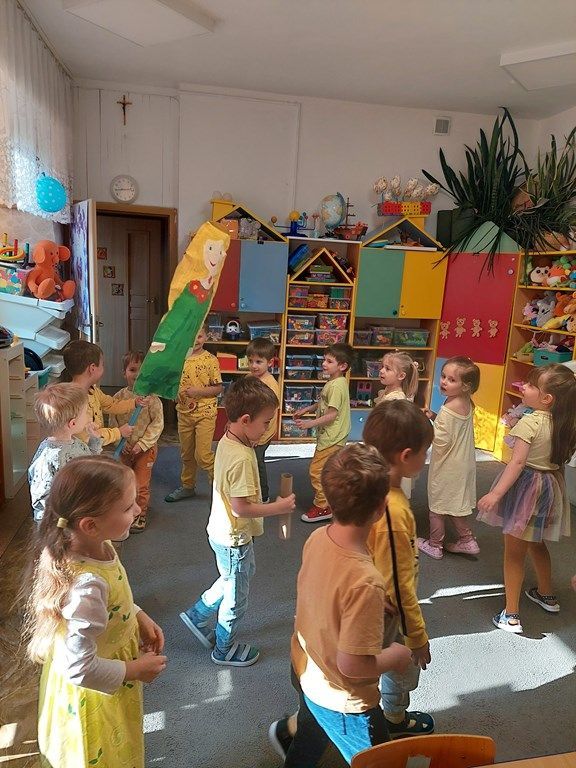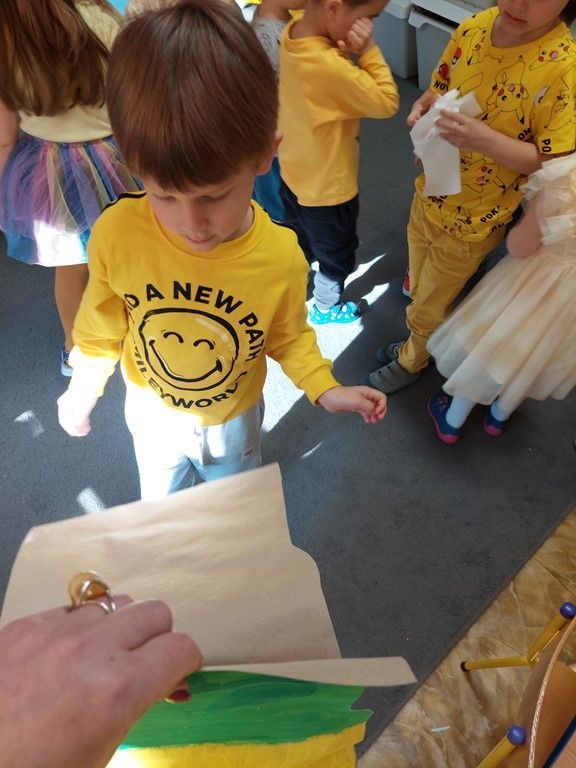 W piątek 10 kwietnia odwiedzili nas muzycy Pro Arte z koncertem muzycznym "Jak Kaczka Mała na Wiosnę czekała". Instrumentem przewodnim był puzon. Przedszkolaki poznały budowę i brzmienie instrumentu, śpiewały piosenki o wiośnie, tańczyły, rozwiązywały zagadki muzyczne oraz obrazkoweTa opowieść muzyczna zabierała dzieci w kolorowy świat dźwięków i wiosennej radości.