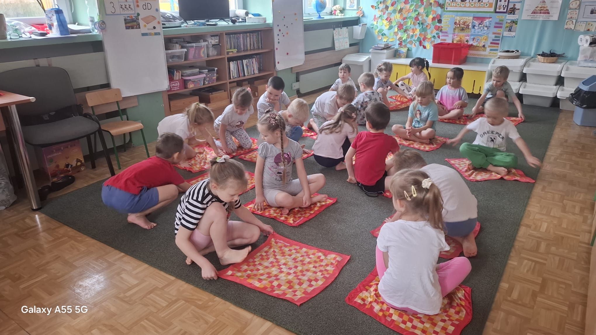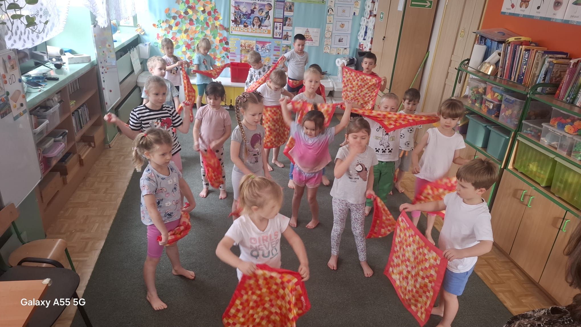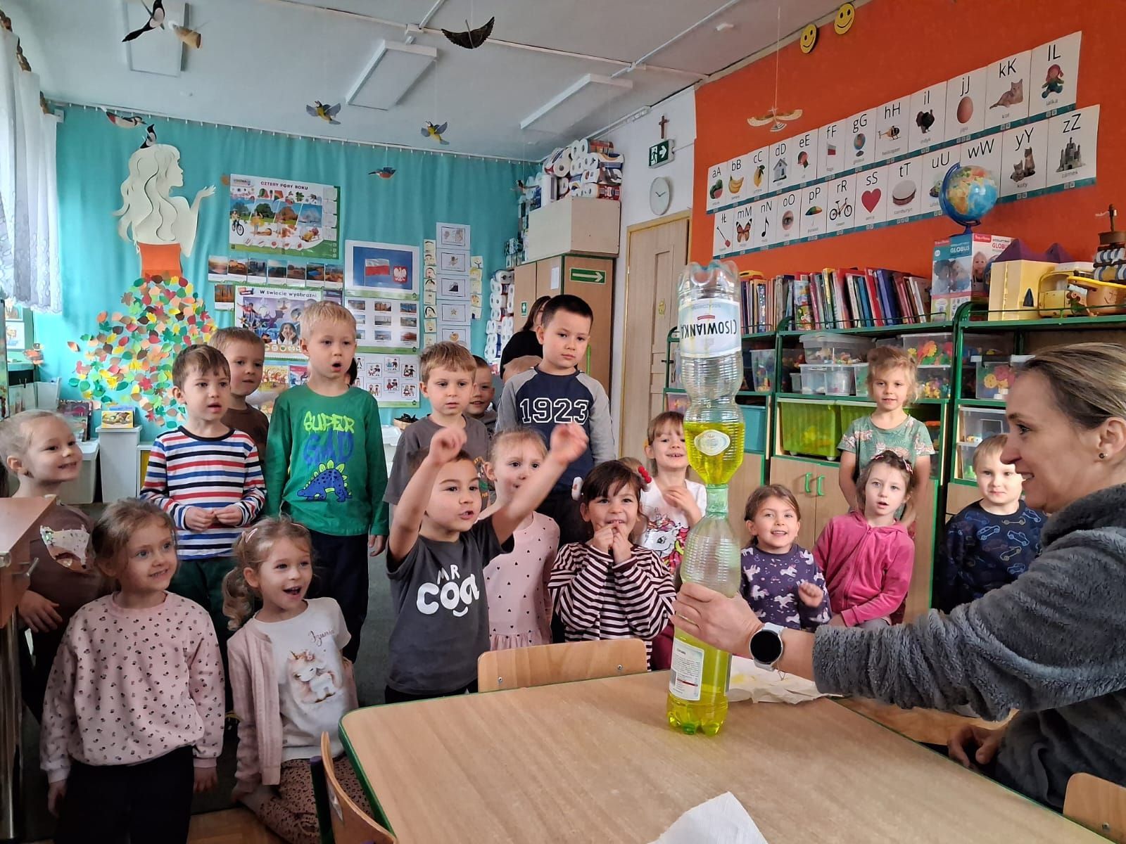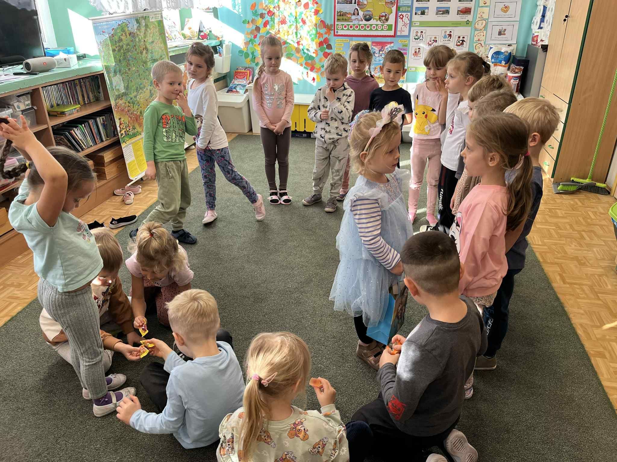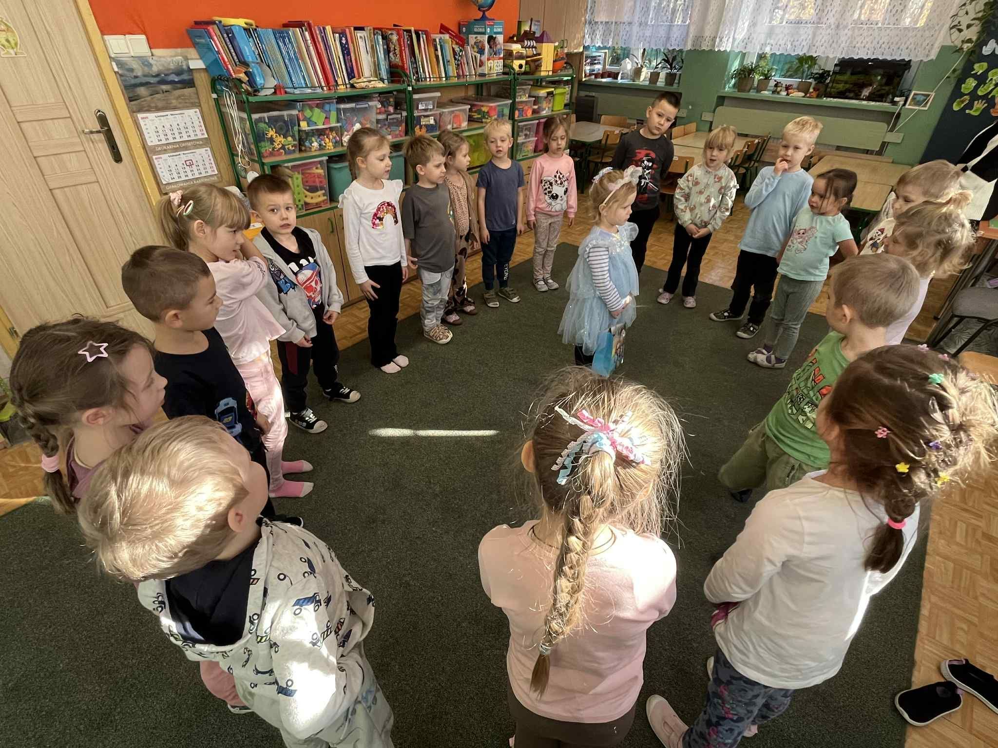 Średniaczki kontynuują swoją emocjonalną podróż w ramach projektu „Czuciaki w Krainie Emocji”. Tym razem czterolatki odwiedziły Wyspę Zdziwienia, gdzie poznały kolejnego mieszkańca – Pana Łał. Podczas zajęć dzieci odkrywały, czym jest zdziwienie i w jakich sytuacjach może się pojawić. Rozmawiały o tym, że zdziwienie może być zarówno przyjemne, jak i nieco zaskakujące, ale zawsze pomaga nam poznawać świat i uczyć się czegoś nowego.