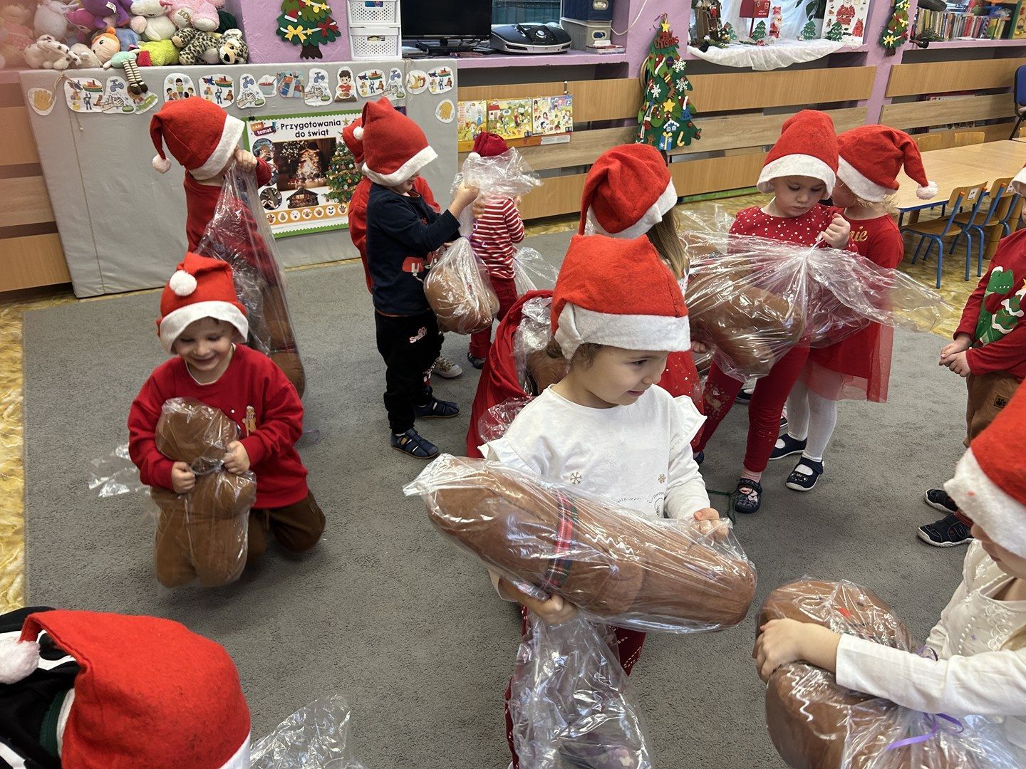 Maluszki po raz pierwszy w Przedszkolu spotkały Świętego Mikołaja. Radości nie było końca...