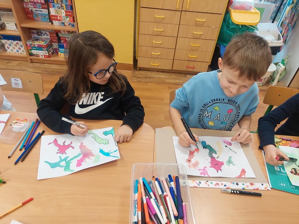 W ramach obchodów numeru 112 Zeróweczka włączyła się w działania związane z pierwsza pomocą. Dzieci utrwaliły zasady postepowania w sytuacji zagrożenia życia. Śwetną zabawą okazało się malowanie wirusów które powstały z rozdmuchiwania kropel tuszu.