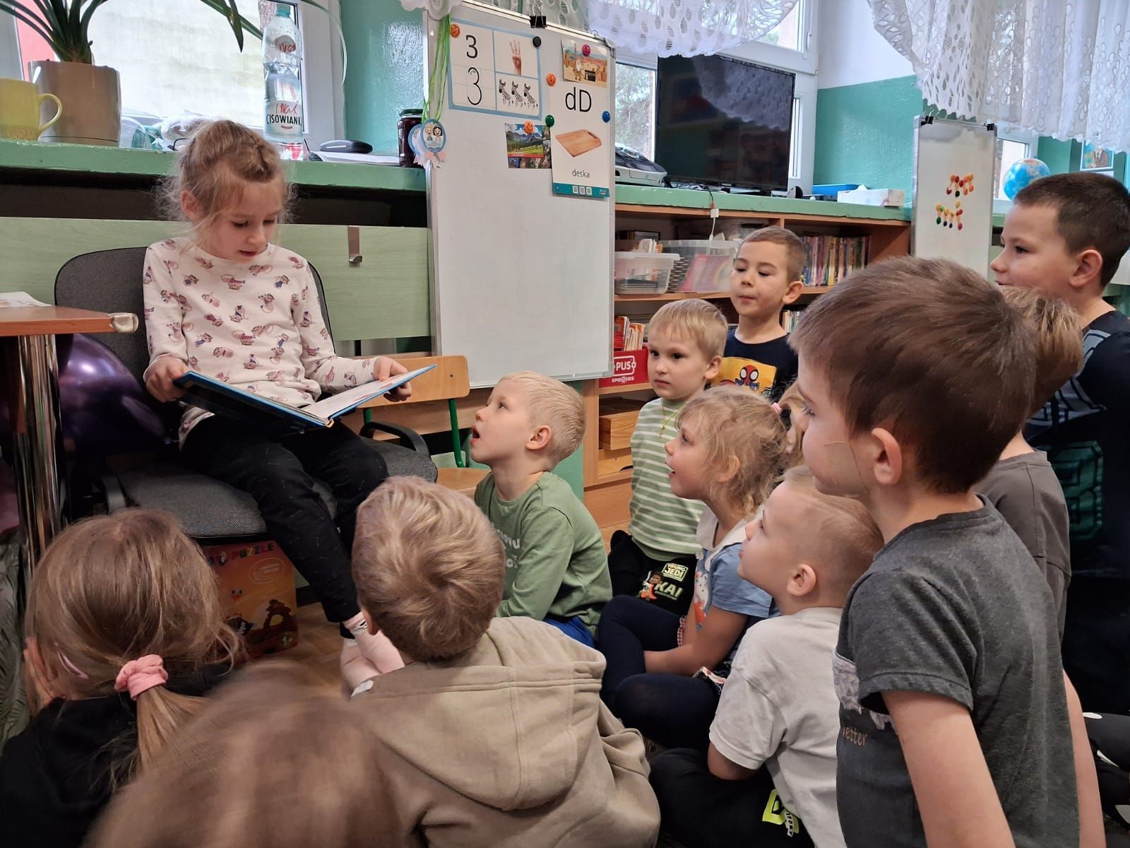 W listopadzie Średniaczki odwiedziła Krysia ze swoją Mamą czytały książeczki, które bardzo podobały się 4 latkom.