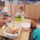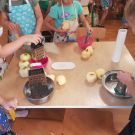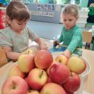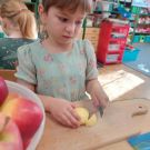 W Dzień Jabłka Starszaczki kroiły jabłka na jabłkowe chipsy. Wycinały i malowały jabłka. Cały dzień był jabłkowy.