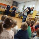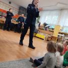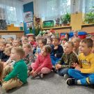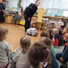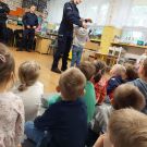 17 maja nasze Przedszkolaki miały okazję spotkać się z Policjantami Komendy z Otwocka. Podczas spotkania Dzieci przypomniały sobie zasady bezpiecznego poruszania się po drogach oraz jak reagować w sytuacjach zagrożeń. Poznały i przećwiczyły zasady właściwego zachowania się podczas ataku psa. Zostały ostrzeżone, że nie wolno niczego brać od osób nieznajomych, nie wolno z takimi osobami rozmawiać, pozować im do zdjęć oraz wpuszczać do domu. Szczególnym zainteresowaniem cieszyła się prezentacja ubioru i wyposażenia policyjnego, niezbędnego podczas wykonywania pracy.