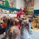 W piątek 19 maja Mama Lissy czytała nam po angielsku piękną bajkę o Gruffalo. To opowieść o małej myszce, która chcąc przechytrzyć napotkane zwierzęta, wymyśla strasznego, nieistniejącego potwora Gruffalo. Wymyślony przez małą myszkę potwór pojawia się w lesie.