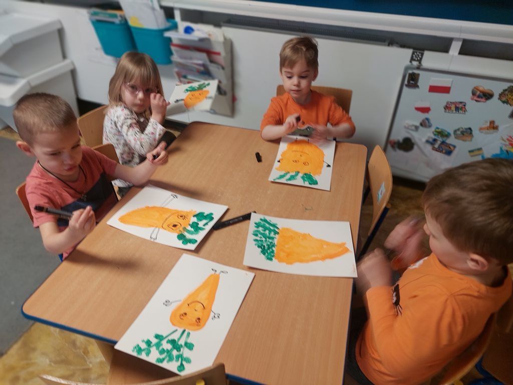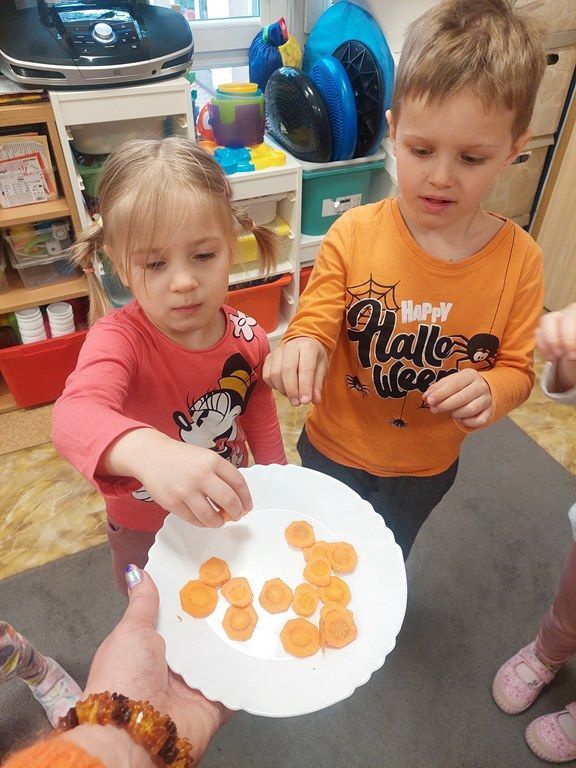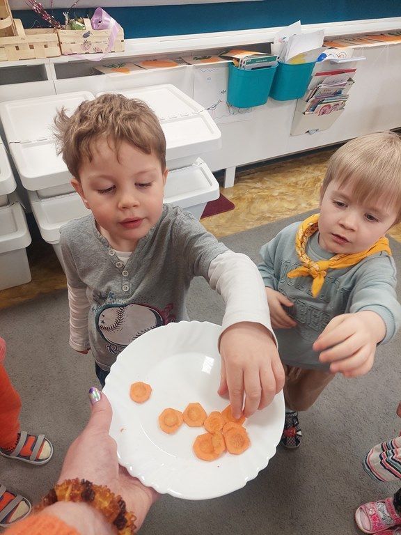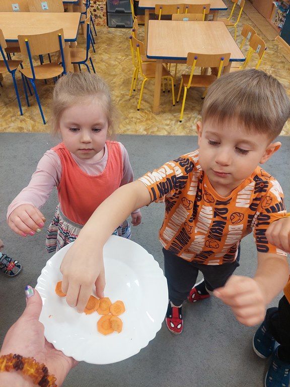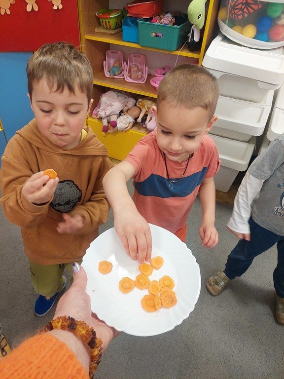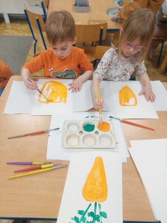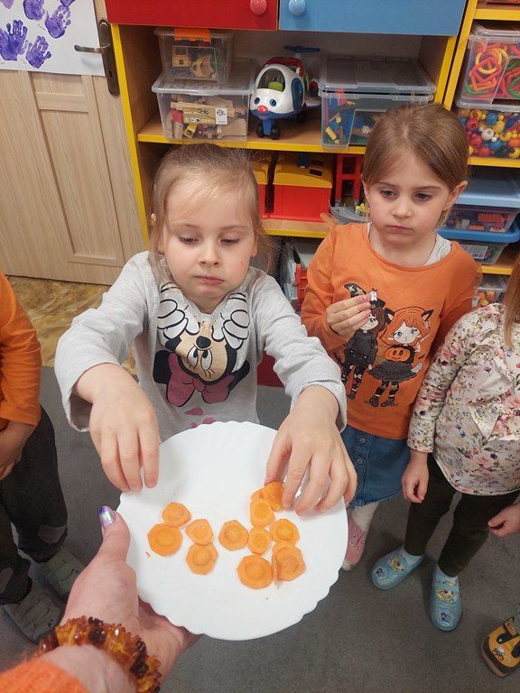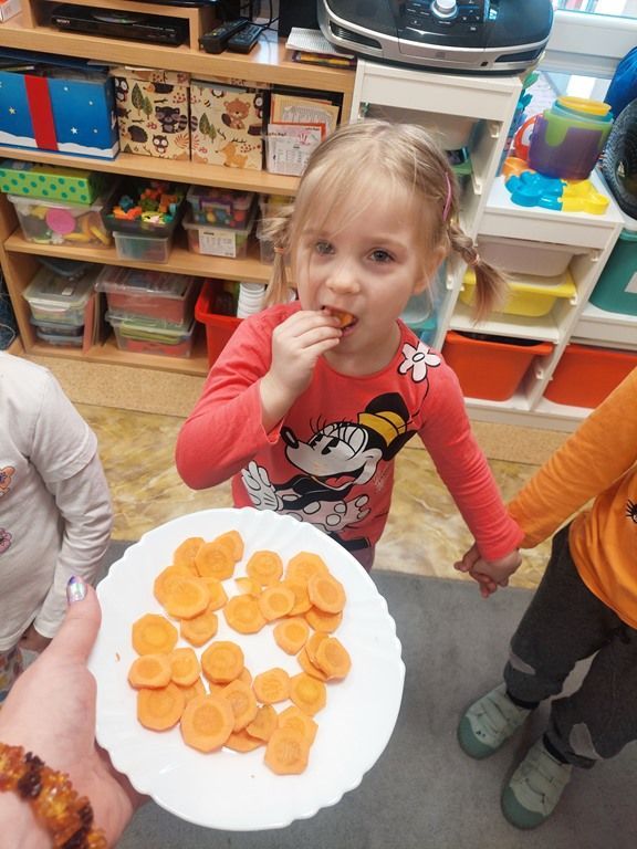 7 kwietnia obchodziliśmy Dzień Marchewki. Dzień Marchewki w przedszkolu  to tematyczny dzień promujący zdrowe odżywianie. Tego dnia  dominowały  pomarańczowe stroje, marchewkowe przekąski  oraz zabawy ruchowe, plastyczne i edukacyjne. Wszystko marchewkowe. Średniaczki bawiły się znakomicie.