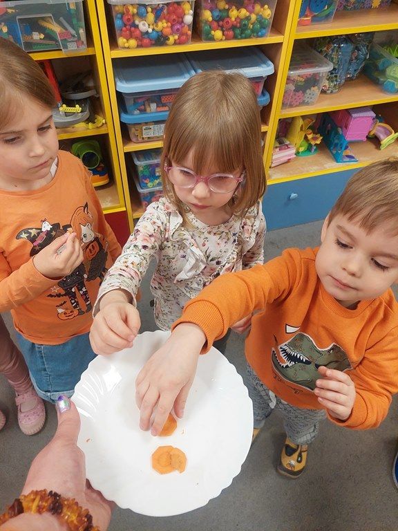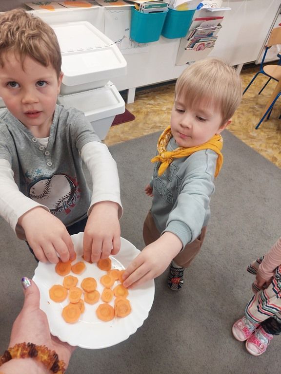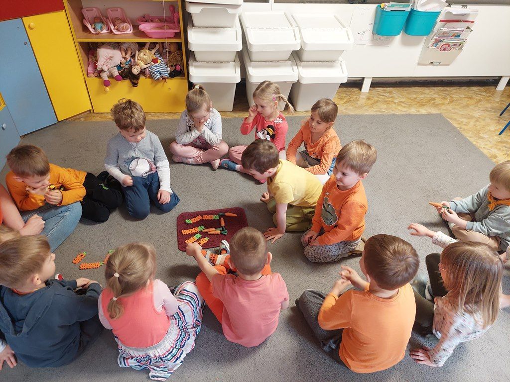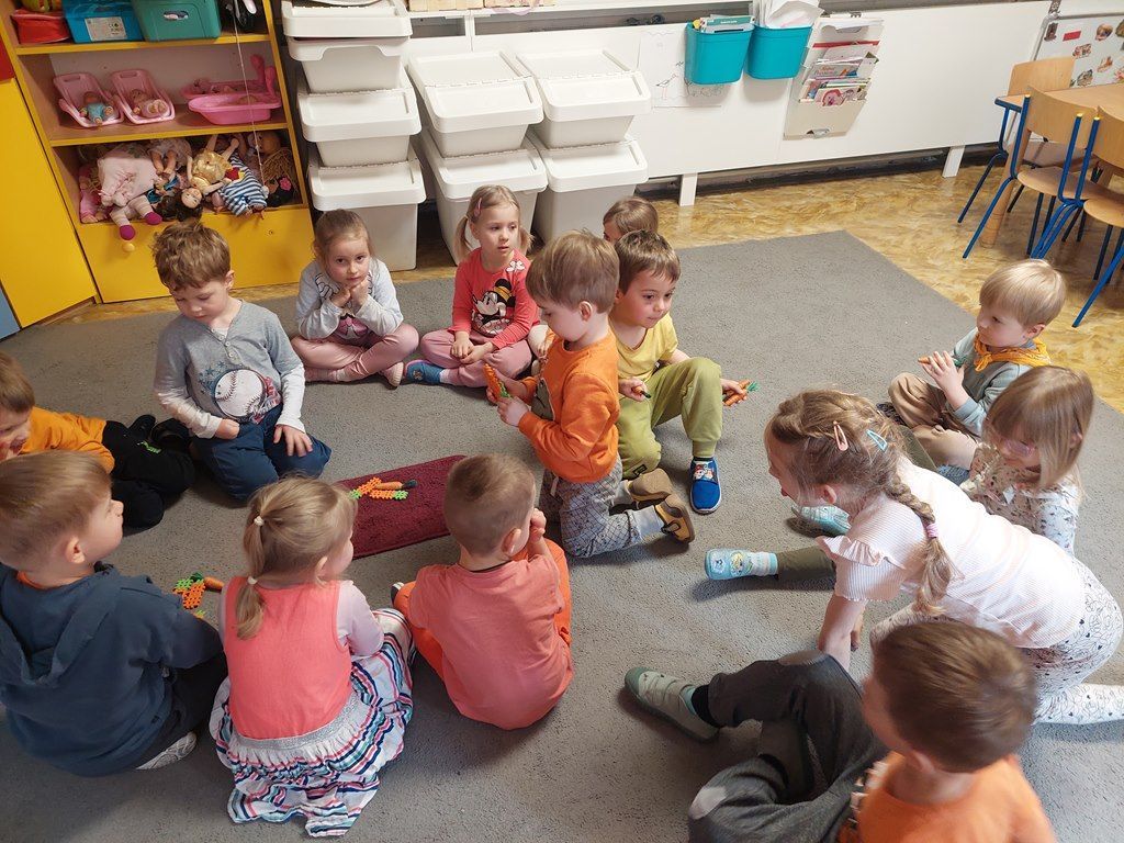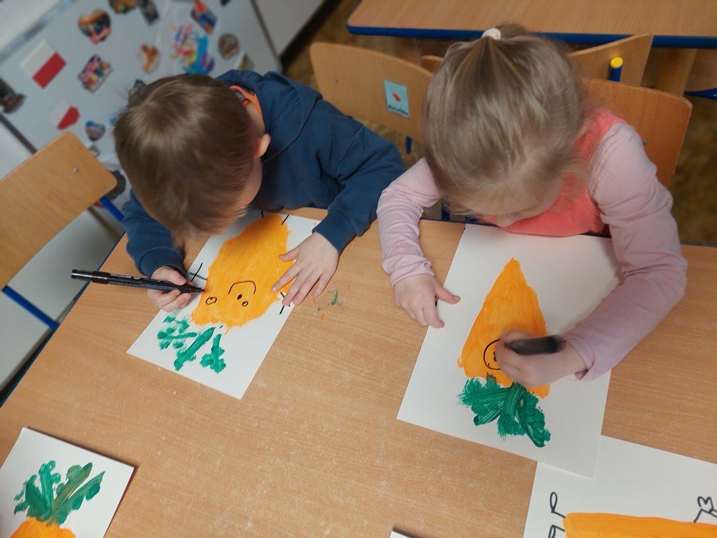 7 kwietnia obchodziliśmy Dzień Marchewki. Dzień Marchewki w przedszkolu  to tematyczny dzień promujący zdrowe odżywianie. Tego dnia  dominowały  pomarańczowe stroje, marchewkowe przekąski  oraz zabawy ruchowe, plastyczne i edukacyjne. Wszystko marchewkowe. Średniaczki bawiły się znakomicie.