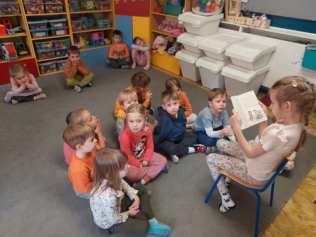 W piątek 10 kwietnia odwiedzili nas muzycy Pro Arte z koncertem muzycznym "Jak Kaczka Mała na Wiosnę czekała". Instrumentem przewodnim był puzon. Przedszkolaki poznały budowę i brzmienie instrumentu, śpiewały piosenki o wiośnie, tańczyły, rozwiązywały zagadki muzyczne oraz obrazkoweTa opowieść muzyczna zabierała dzieci w kolorowy świat dźwięków i wiosennej radości.